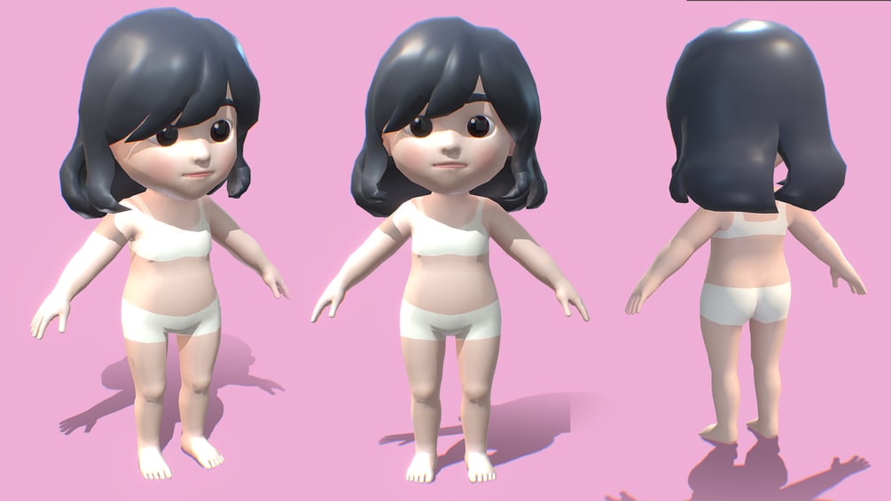 - Base Mesh: Cartoon Girl Kid with rigger and UV ( 6,7k tris )