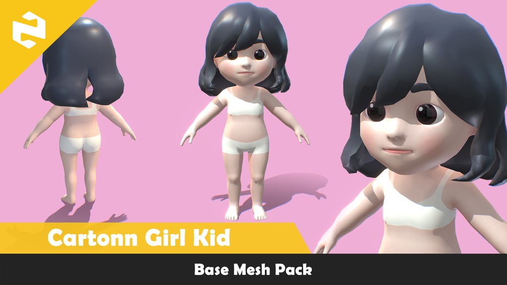 Base Mesh Pack - Cartoon Girl Kid ( Rigged )