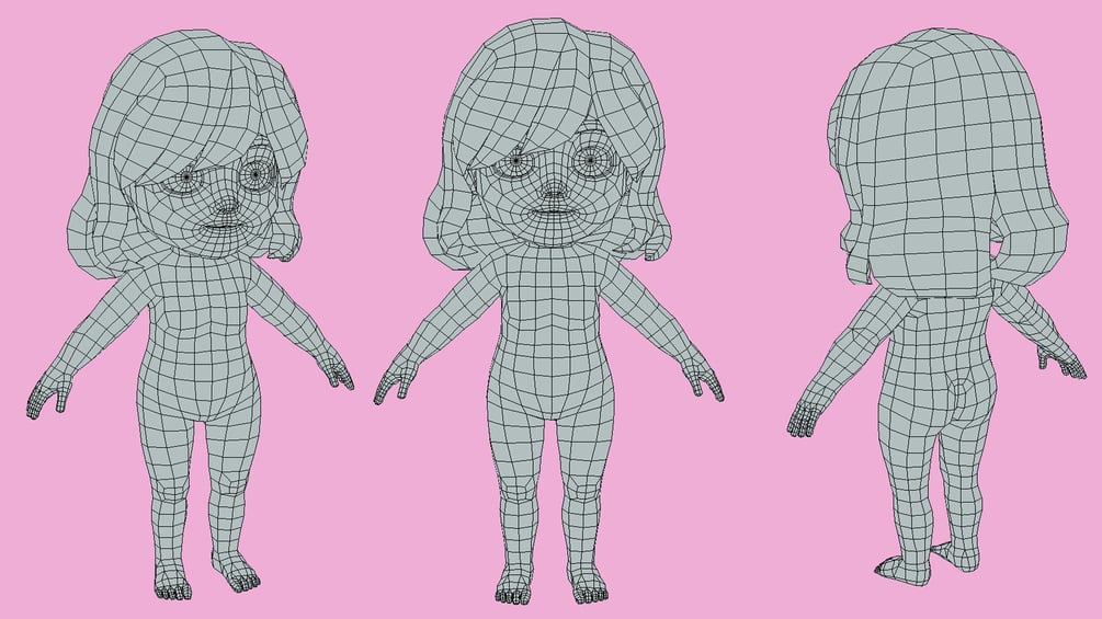 Would like to introduce to everyone base mesh cartoon Girl Kid in cartoon base mesh collection. The product is suitable for immediate use in games, movies, animations…! A good background grid allows you to save time with good proportions, clear topology, and clean paint weight