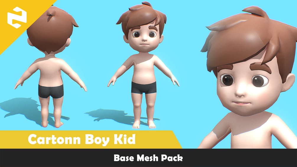 Base Mesh Pack - Cartoon Boy Kid ( Rigged )
